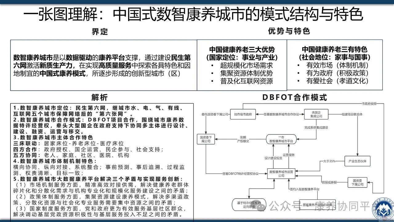 DBFOT项目合作,围绕城市康养数据特许经营权,牵头大型国企在政府支持下协同多主体进行设计、建设、融资、运营与移交。