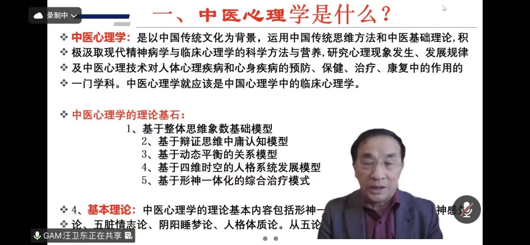 本次讲座邀请到了中国中医科学院首席研究员汪卫东教授为大家进行深入分析解读,讲座围绕“健康睡眠,健康心理”主题展开,结合大量案例与医学数据,系统详细阐释了睡眠障碍、心理健康等问题。汪教授首先普及了中医相关知识,从中医的整体观与“形神合一”思想出发,深入浅出地普及了中医对于睡眠与心理关系的独到见解。随后汪教授结合生动的临床案例,介绍了其在中医心理学领域的创新成果——低阻抗意念导入疗法(TIP疗法)。他详细讲解了如何将中医的“治神”思想与现代心理治疗技术相结合,又对“蘑菇头”,“蘑菇体”疗法等实用治疗方法作了普及。
